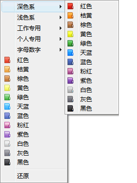 您可以自己制作扩展包,然后挂载到彩色文件夹软件中。图中的“深色系”,“浅色系”,“工作专用”,“个人专用”,“字母数字”便是扩展包。